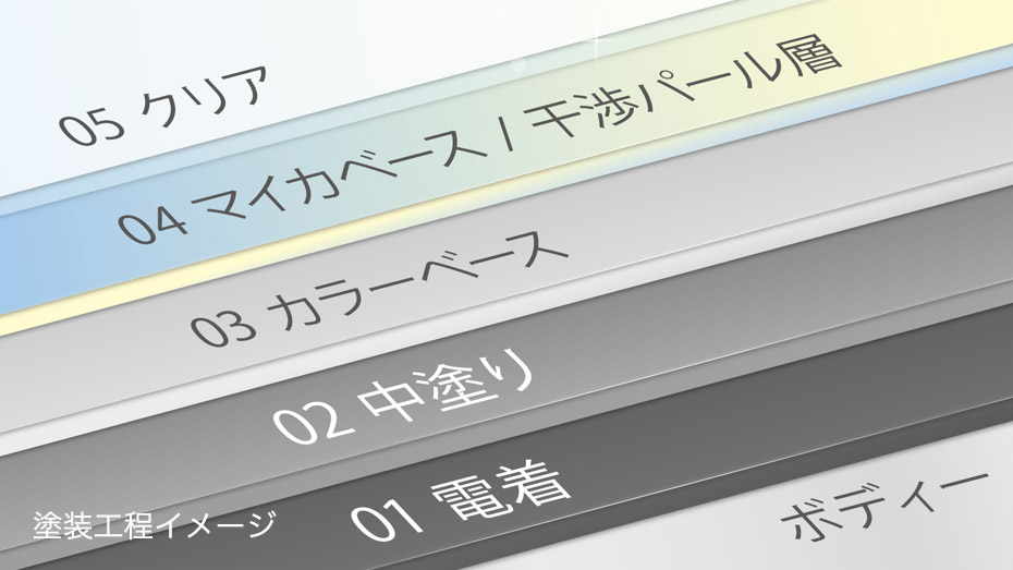 心地よい光を表現するパール層で黄から青へとカラーシフトさせ、立体感と滑らかな透明感を実現。