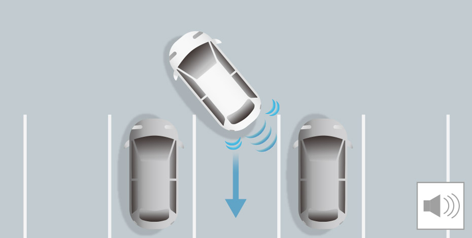 バックの際、クルマの後方と斜め後ろにある障害物の接近を音と表示で知らせ、安心感のある運転をサポート。