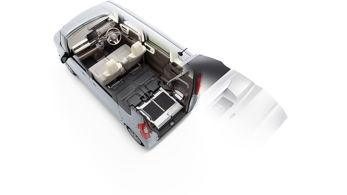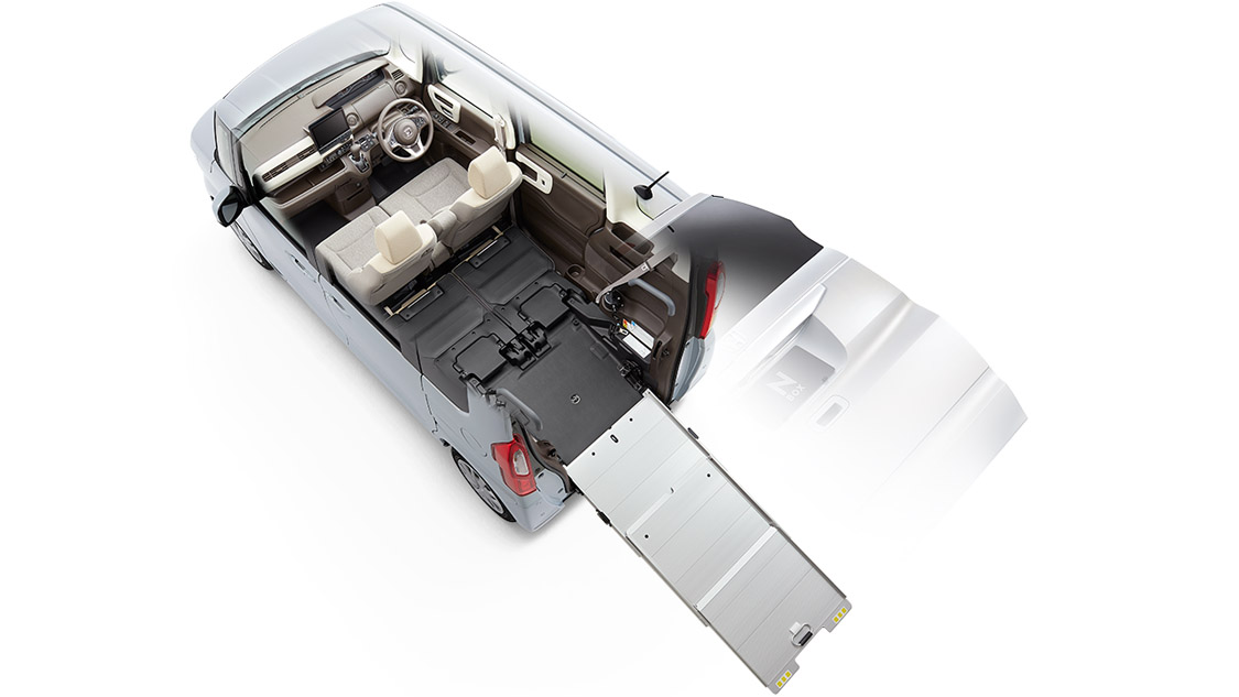 普段はフラットな荷室の床として、引き出せばそのままスロープとして使える画期的な「スーパーフレックススロープ」が、生活に新しい可能性を生み出します。