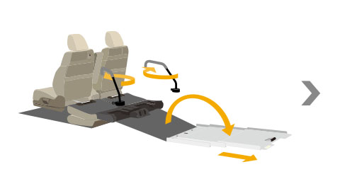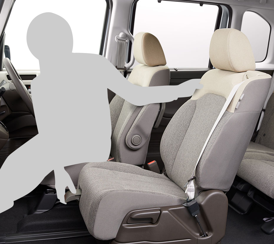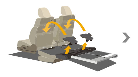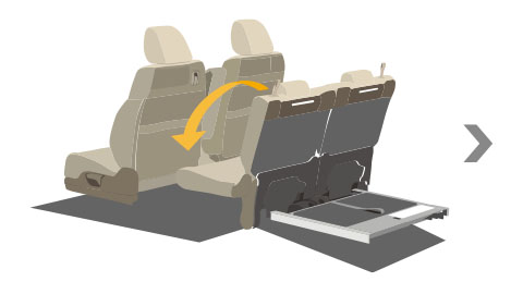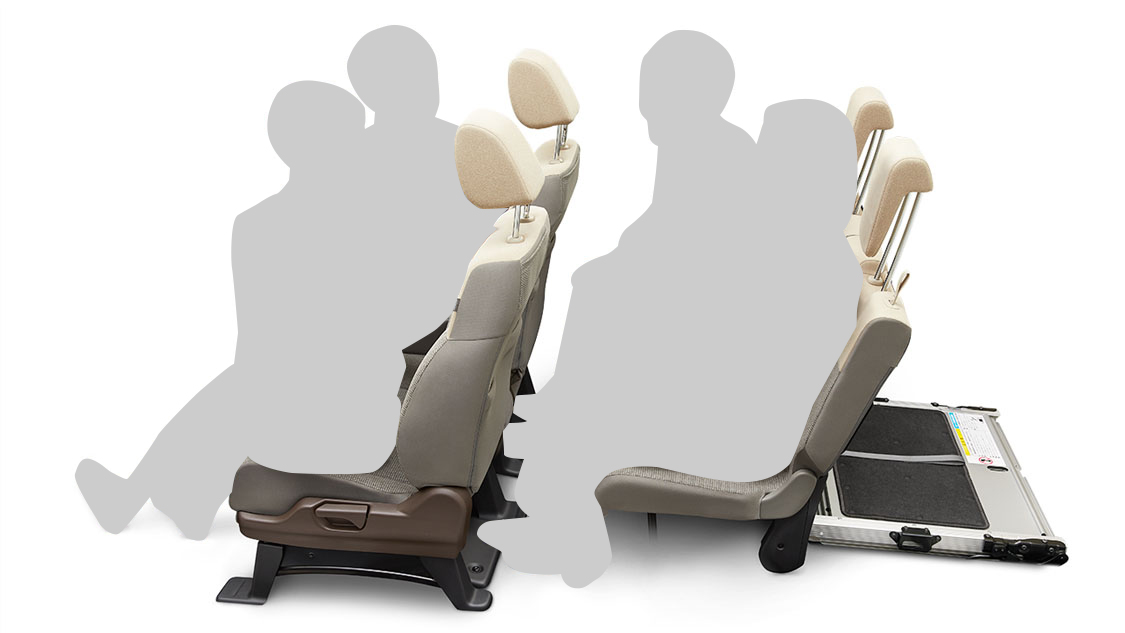 シンプルな操作で「4人乗車モード」から「車いす乗車モード」へ、すばやくチェンジ。