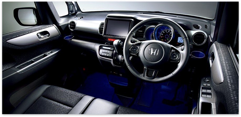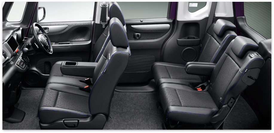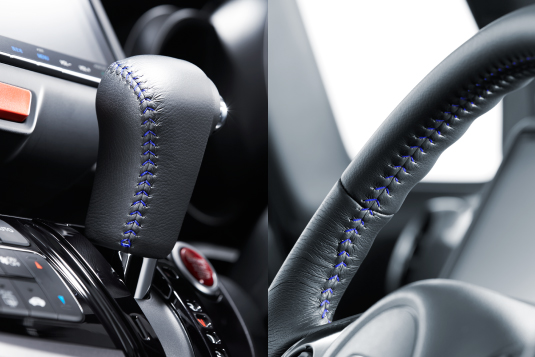 柔らかく質感高いレザー調のプライムスムースとトリコット生地を組み合わせ、ブルーダブルステッチで縫い上げた専用のコンビシート。前席のシートは、個性を際立てる“Modulo X”の刺繍入り。乗り込む前に外からも見え、心に昂ぶりを与える。