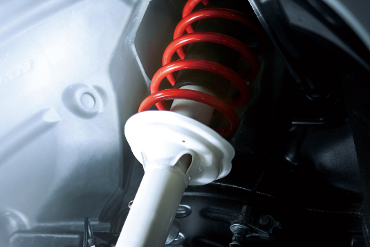 精悍なスタリングを際立てる15mmローダウン仕様。しかしながら硬い脚ではなく、起伏や段差などでタイヤが跳ねない路面追従性を徹底追求。膨大な試作、過酷な路面環境を持つ北海道・鷹栖テストコースでの走り込みを重ねて生み出した。極めてしなやかで、乗り心地よく、安定感を持ってよく曲がる性能を実現している。