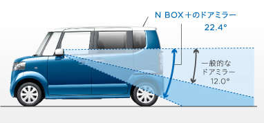 ドアミラーの下部を広角化して、後輪まで見えるよう視野範囲を拡大。後方確認をいっそうしやすくしました。