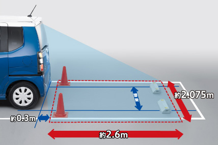 運転席からでは見えない範囲を広く映し出します。