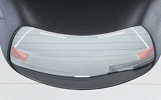 室内のハイマウント・ストップランプ下側にも、後方の死角を減らすミラーを配置。運転席からは見えない車両の後方下を広く映します。