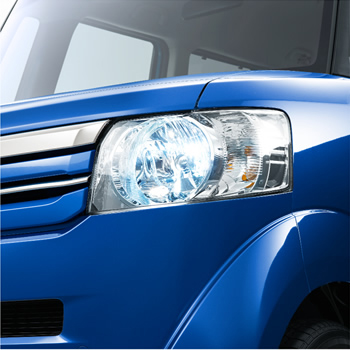 より遠くまで明るく照らし、夜間や雨天時の安心感を大きく向上。通常のヘッドライトより大光量ながら、省電力にも貢献します。照射軸の上下方向を自動調整するオートレベリング機構、点灯忘れも防止できるオートライトコントロール機構付。