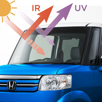 お肌の大敵、紫外線(UV)をほぼカット。さらに、腕や顔にジリジリした不快な暑さを生む赤外線(IR)を軽減し、冷房効果も高めるガラスを、前席の窓すべてに採用しました。
