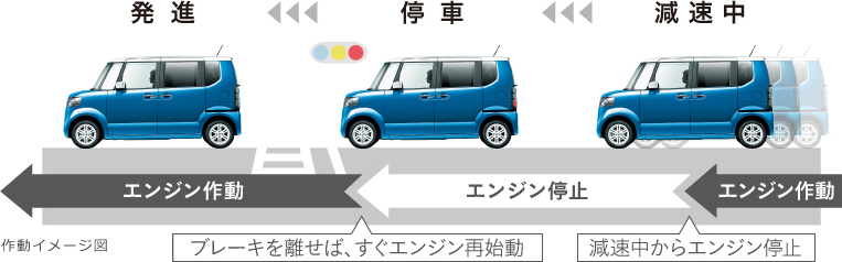 赤信号の手前など、減速中からエンジンを自動的にストップ。停車中だけエンジンを止める従来のアイドリングストップシステムよりも長くエンジンを止め、燃料消費と排出ガスをいっそう抑えます。