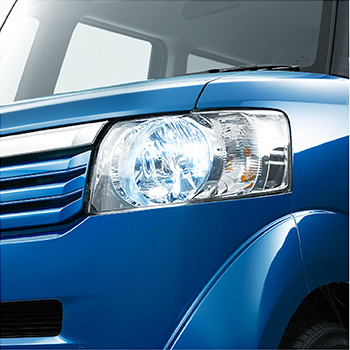 より遠くまで明るく照らし、夜間や雨天時の安心感を大きく向上。通常のヘッドライトより大光量ながら、省電力にも貢献します。照射軸の上下方向を自動調整するオートレベリング機構、点灯忘れも防止できるオートライトコントロール機構付。