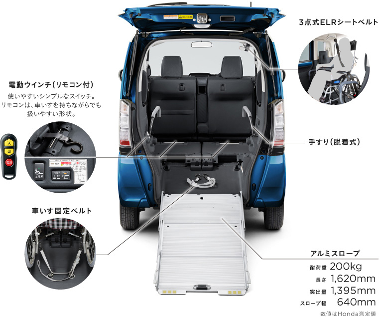 詳しくは「N-BOX + 車いす仕様車」のページをご覧ください。