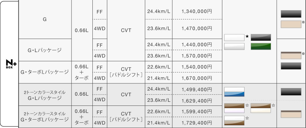 ★印のボディカラーは21,600円(消費税抜き 20,000円)高となり、表示価格には含まれておりません。
