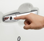 Hondaスマートキーをポケットやバッグに携帯していれば、前席のドアまたはテールゲートのドアハンドルにあるボタンを押すだけで、手軽に施錠/解錠ができます。キーも、スマートな小型のデザイン。