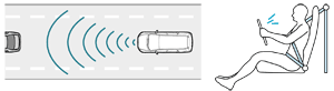 走行中ミリ波レーダーにより前走車を検知。前走車へ接近し、追突のおそれがあるとシステムが判断した場合、音と表示で警報を発します。