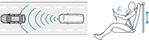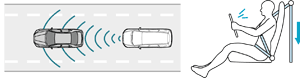 自動で軽いブレーキをかけ、運転席シートベルトの弱い引き込みを行うことで体感警報を与えます。
