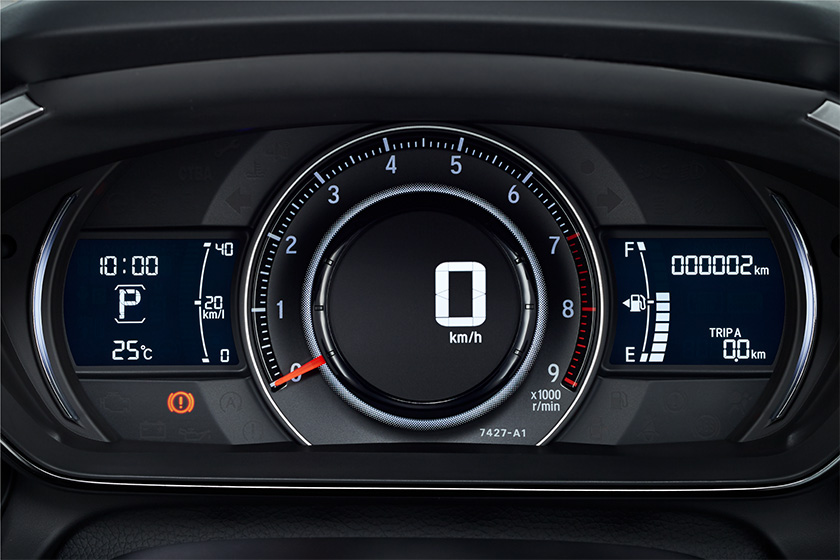 中央にデジタルスピードメーター、その周囲にアナログタコメーターを配置し、コンパクトながら必要な情報を瞬時に読み取れる、スポーツカーのための"瞬間認知メーター"。