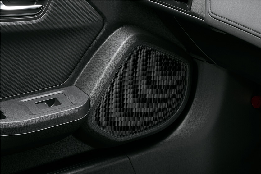 スピーカーの配置も検討し、オープン時でも低音域から高音域までクリアな音質を実現。車速連動オートボリューム機能も設定。