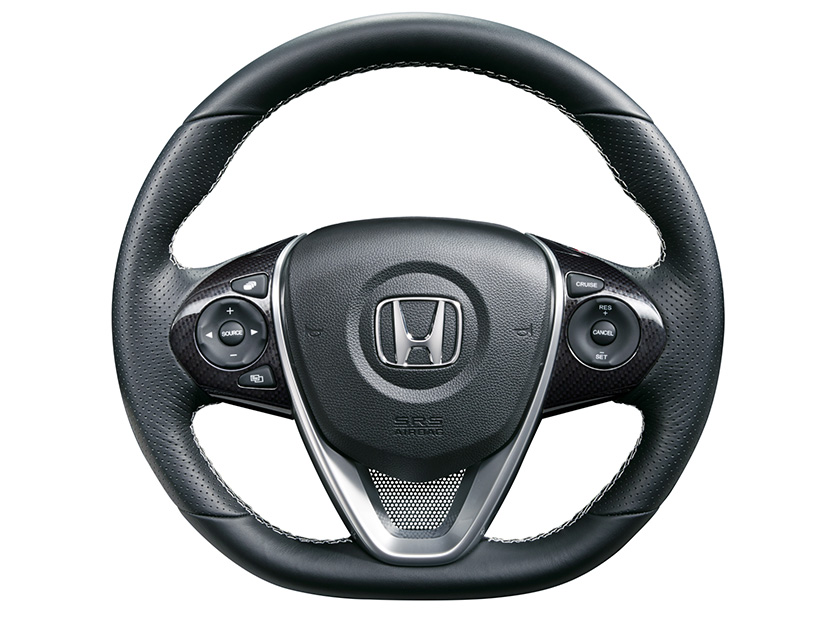 軽快な操作感を目指し、サイズをHonda市販車では最小径となるφ350mmに設定。握り心地の良さにどこまでもこだわり、専用開発した。 ■数値はHonda測定値。