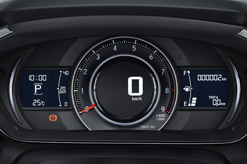 中央にデジタルスピードメーター、その周囲にアナログタコメーターを配置し、コンパクトながら必要な情報を瞬時に読み取れる、スポーツカーのための"瞬間認知メーター"。