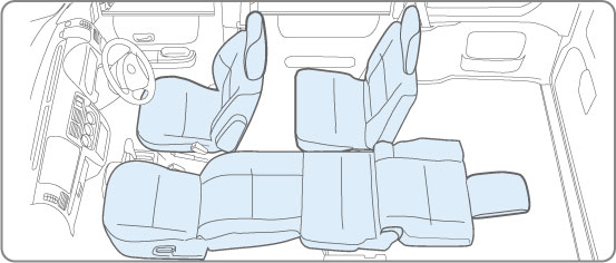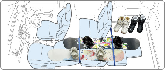 用途に合わせてシートの倒し方いろいろ。乗る人の数や載せたい荷物によって、様々なアレンジができます。