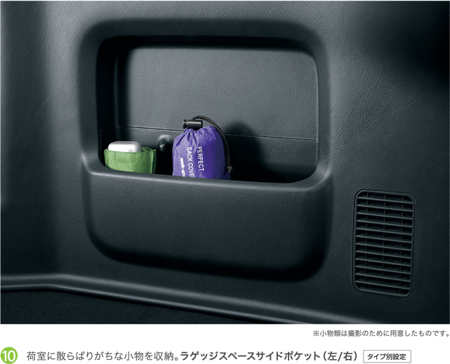 フルフォールダウン機構付で、足もとスペースにすっぽり収納可能。フラットな荷室が広がります。