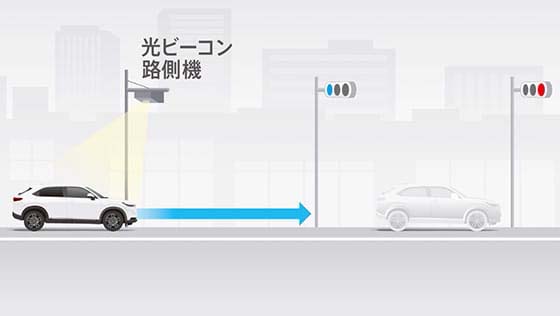 - 信号情報活用運転支援システムは、あくまでも運転者に情報提供するための補助機能です。常に周囲の状況を確認し、安全運転を心がけ、走行してください。あらゆる状況で作動する機能ではありません。サービス提供路線であってもサービスされない区間や、工事等でサービスしていない場合、また押しボタン式信号などサービス対象外の交差点があります。