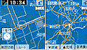 縮尺の異なる地図を同時に表示。またガソリンスタンドなどをあらかじめ選択し、表示するランドマーク表示機能も装備。 |