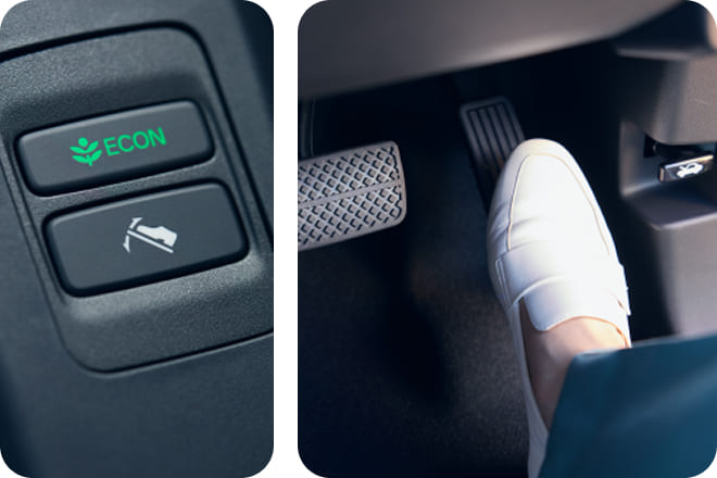 ボタンひとつでシングルペダルコントロールに切り替え。踏むと前進、緩めると減速・停止までできるし、ちょうどいい減速フィールだから運転がスーッと快適に。