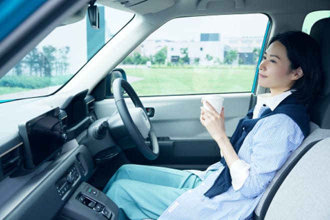 平日の通勤から週末のおでかけまで。軽EVトップ※3の一充電走行距離だから、みんなの一週間のリズムに寄り添ってくれる。