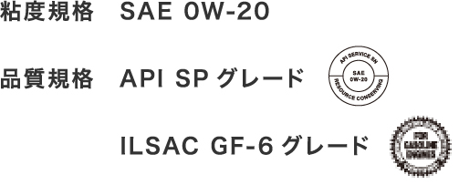 - ※SAEの規格に適合しませんので、API/ILSACのマークはありませんが車両のエンジンとともに開発され、多岐にわたる性能試験を実施しておりますので機能上はまったく問題ありません。