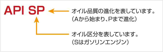 これらの適合マークをオイル缶に表示しているものは、エンジン機能を保つ上で、必要なオイル性能を持っていることを示しています。