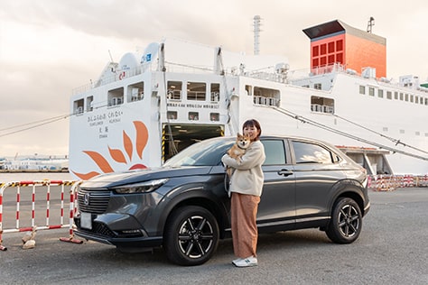 「さんふらわあ くれない」で<大阪―別府>間の九州の旅を体験するのは、水島さんと愛犬のオルくん(オス・2才/ポメラニアン×柴)。これまで、オルくんと長時間のドライブはあっても、旅行をするのは初めてという水島さん。「初めての旅行なのとフェリーにも初めて乗るので、ちょっと不安ですが、それ以上にとっても楽しみです」とにっこり。