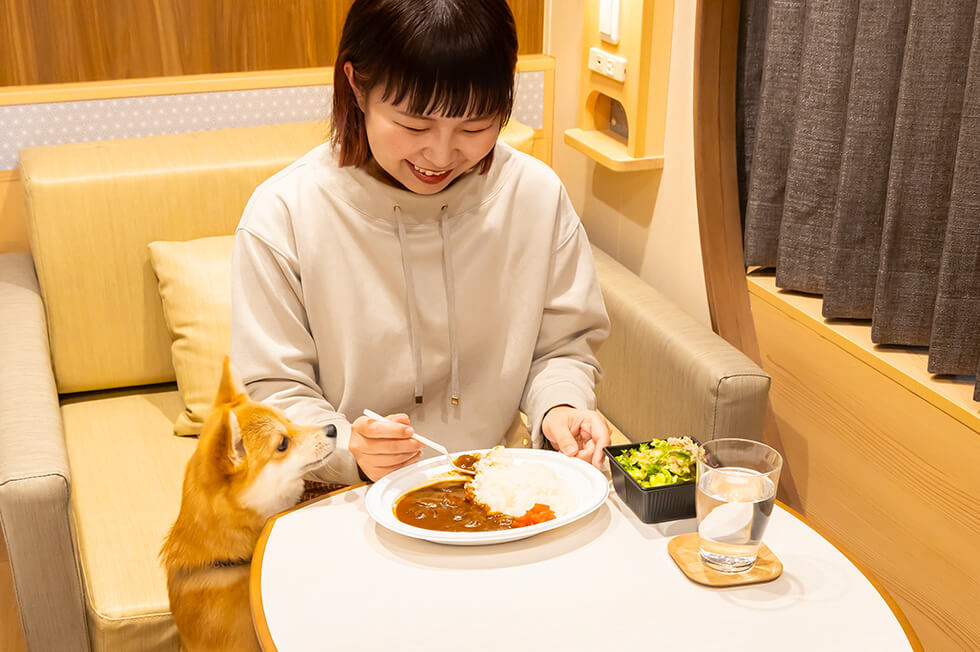 ずっと愛犬と一緒にいたい!という飼い主さんには、料理をレストランでテイクアウトするのがおすすめです。水島さんはオルくんと一緒にお部屋で夕食を楽しみました。