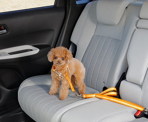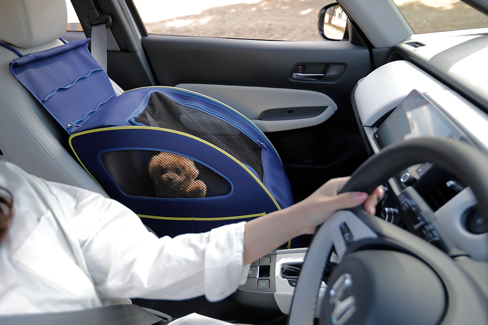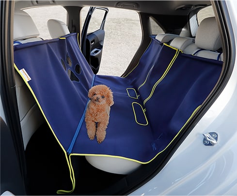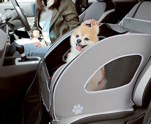 わんこを助手席に乗せて一緒にドライブを楽しめるHonda純正アクセサリー、「ペットシートプラスわん」に対応。側面がメッシュになっているのでお互いの様子を確認しやすく、わんこもリラックスして乗車できます。