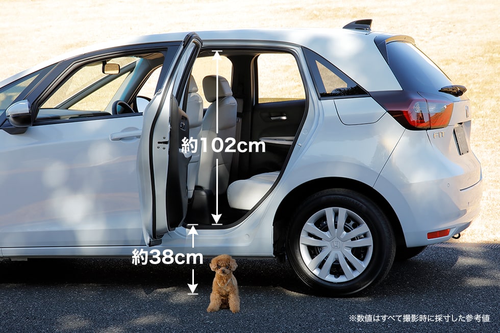 フロアまでの高さは地上から約38cmの低床。加えて、後席ドア部分の開口高が約102cmあるので、わんこを抱っこ、またはキャリーケースを持っていても楽に乗り降りできます。