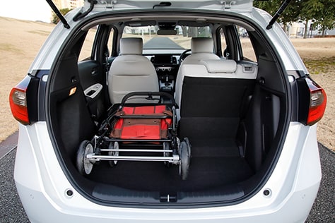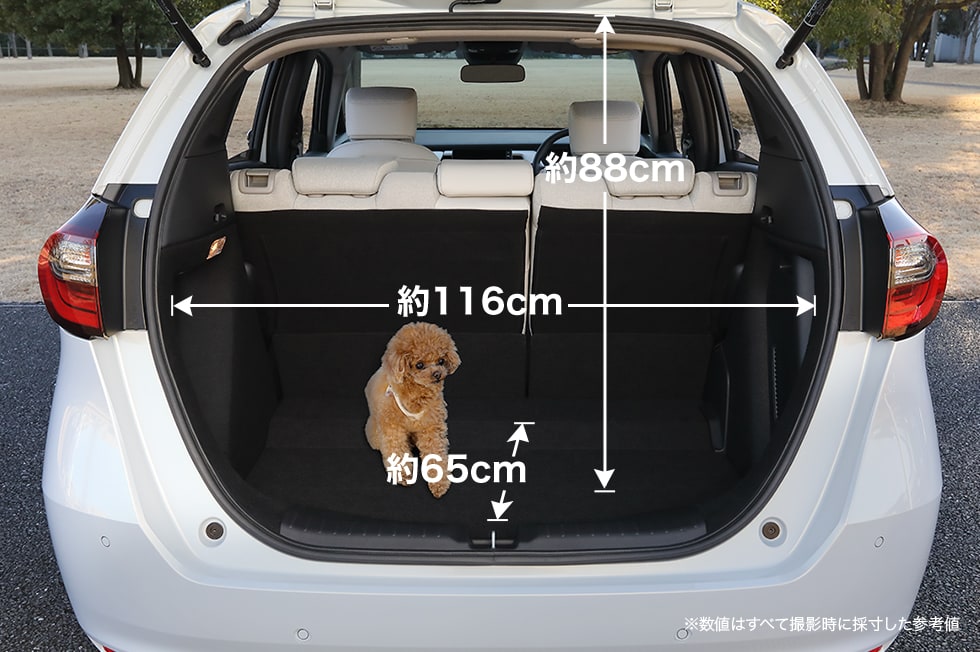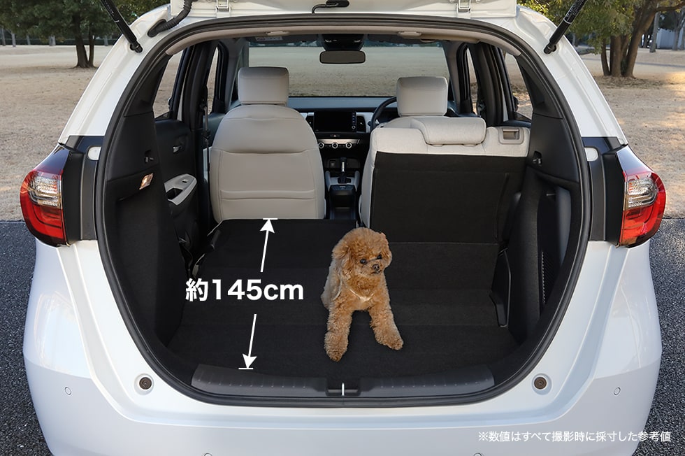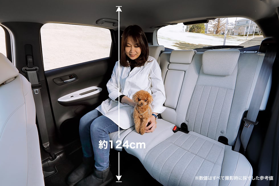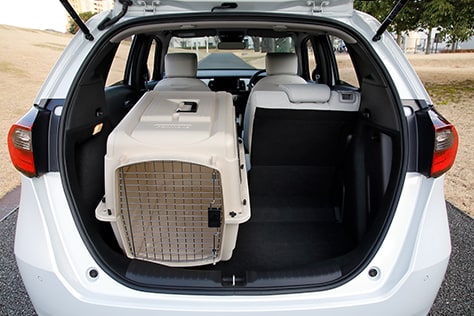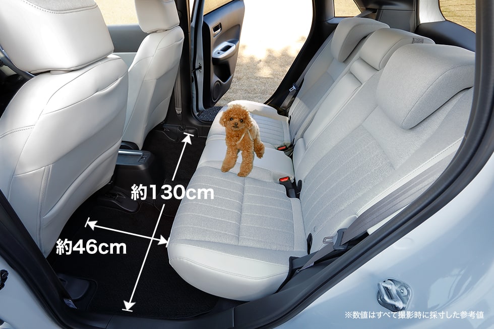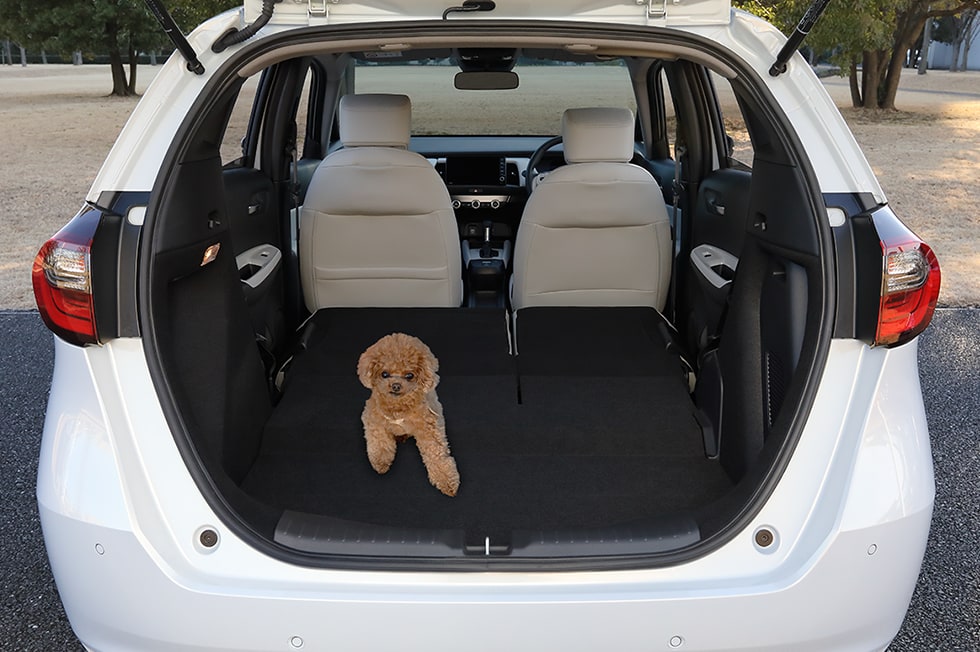 ひざまわり、そして頭上にも、ゆとりをしっかりとることで、開放感を高めたフィット。飼い主もわんこも快適。コンパクトカーとは思えないほど、ゆったりとくつろげます。