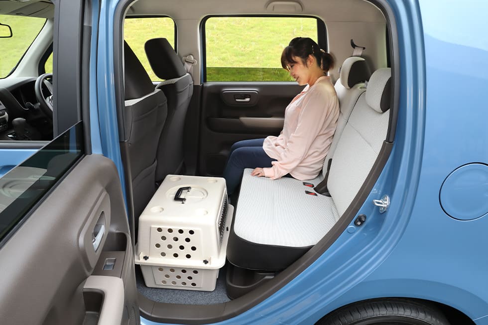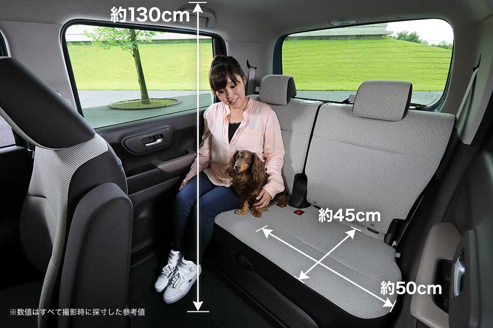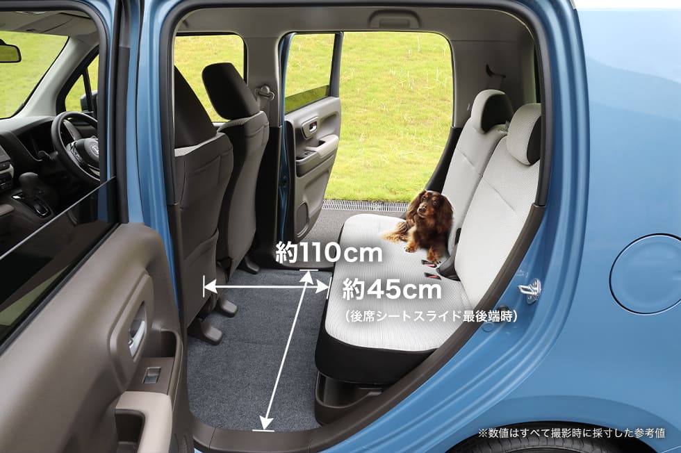 また 、リアシートを前にスライドさせて、スペースを広げたりと便利に使い分けられ、わんこと一緒のお出かけにも大活躍です。