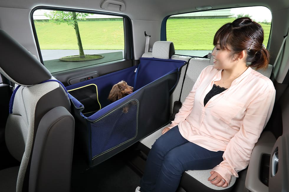 わんこを助手席に乗せて一緒にドライブを楽しめるHonda純正アクセサリー、「ペットシートプラスわん2」に対応。側面がメッシュになっているのでお互いの様子を確認しやすく、わんこもリラックスして乗車できます。