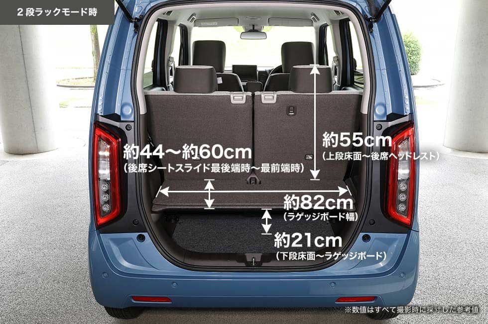 備え付けのボードを使った2段ラックモードでは、ラゲッジスペースを上下に仕切って積み分け。おさんぽグッズやおもちゃなどを、すっきり収納できます。