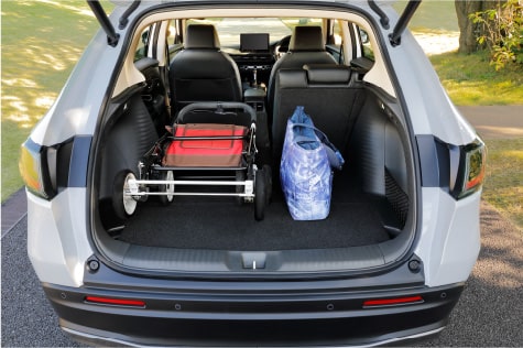 5名乗車時もラゲッジスペースはゆったり。おさんぽグッズやおもちゃをさっと積んで、わんこと一緒に気軽に出かけられます。