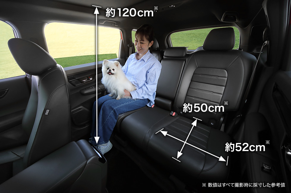 膝周りや頭上にもゆとりがあり、わんこと並んでゆったりくつろげます。