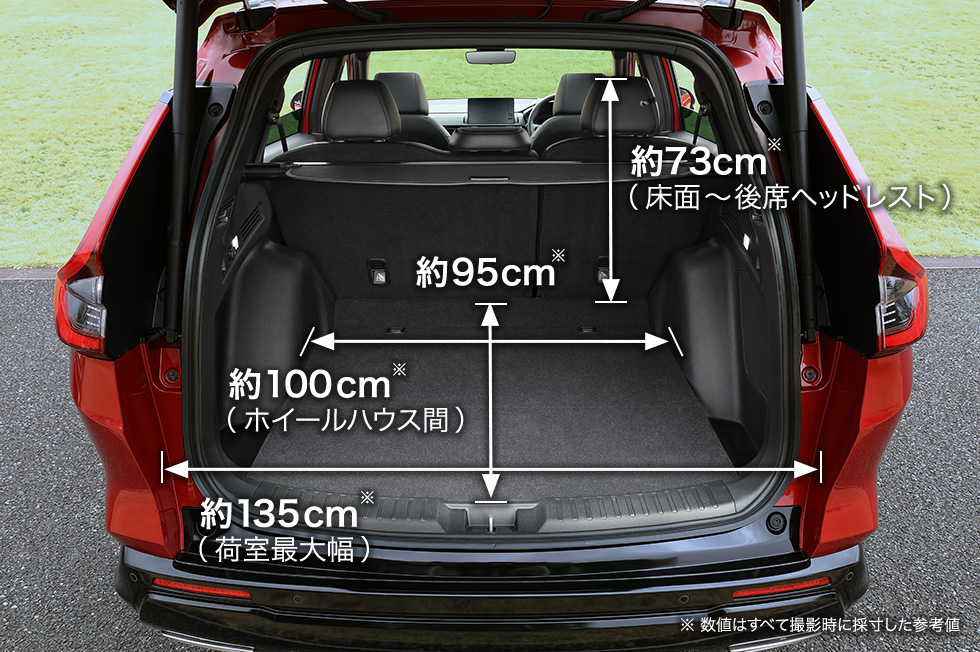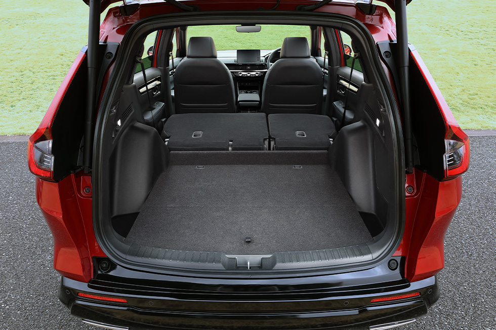 荷室は、5名乗車時も中型や大型のキャリーケースを載せられる大容量。