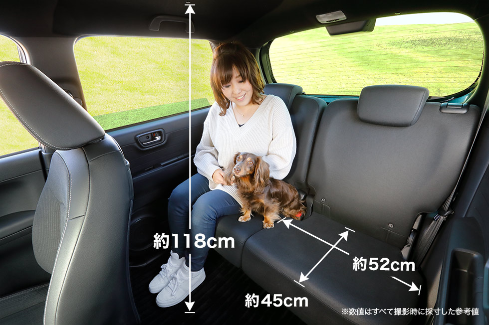 足もとやひざまわり、頭上にもゆとりがあるので、わんこと並んでゆったりくつろげます。