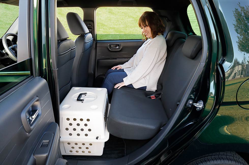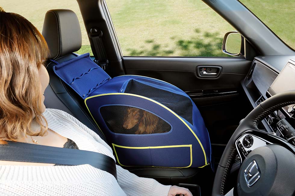 わんこを助手席に乗せて一緒にドライブを楽しめるHonda純正アクセサリー、「ペットシートプラスわん」に対応。側面がメッシュになっているのでお互いの様子を確認しやすく、わんこもリラックスして乗車できます。
