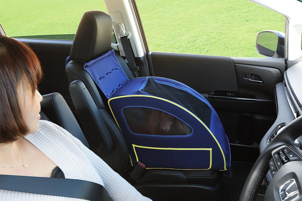 わんこを助手席に乗せて一緒にドライブを楽しめるHonda純正アクセサリー、「ペットシートプラスわん」に対応。側面がメッシュになっているのでお互いの様子を確認しやすく、わんこもリラックスして乗車できます。