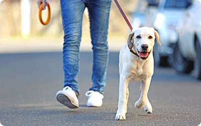 暑い時期になったら、日中はもちろん、夕方の早い時間のお散歩もなるべく避けましょう。アスファルトは長い時間熱を発散するので、日が沈んだばかりの時間帯もまだまだ安心はできません。飼い主さんはちょっぴり大変ですが、この時期のお散歩は、早朝か夜にするのが無難です。とくに、フレンチブルドッグやパグのような鼻ペチャの短頭種は、わんこの中でも体熱の放出がうまくできない犬種なので、夏の外出は要注意です。
