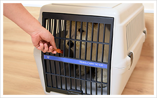 慣れるまでは、リビングなどつねに家族のいる場所に置いてください。クレートに入るとひとりぼっちになる、という印象を与えないように。