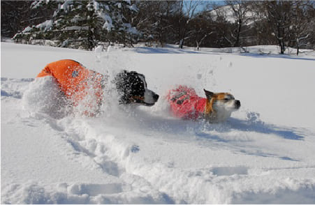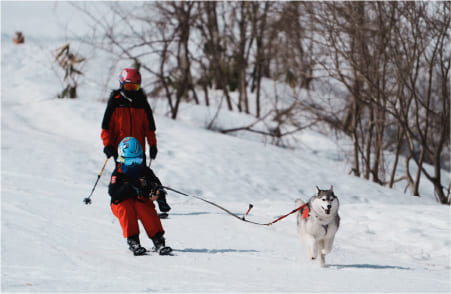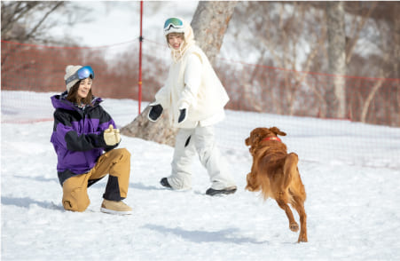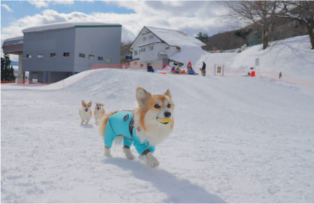 わんこと一緒にスキーやスノボを楽しみたい!しかもプライベートエリアで楽しみたいなら北海道・トマムの「わんわんゲレンデ」がおすすめ!全長約1,000m、初心者コースの一部を仕切り、リゾナーレトマム愛犬スイートルーム宿泊者限定のプライベートゲレンデとして開放。雪の中で遊ぶのが初めてというわんこも安心して利用できるよう、5つのアイテムが入ったリュックとわんこ用のスノーウェアも貸し出しています。リュックには犬用のおやつと水、トイレ回収セット、約8mのリードなどを揃えています。