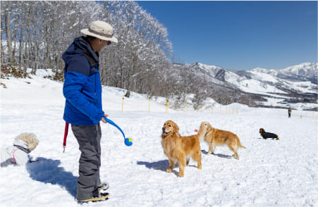 ※料金には、わんわんゲレンデ使用料金、わんわんケアグッズ、スノーカート、わんこ用のスノーウェアやスノーブーツ、リゾナーレトマムからゲレンデへの送迎が含まれる