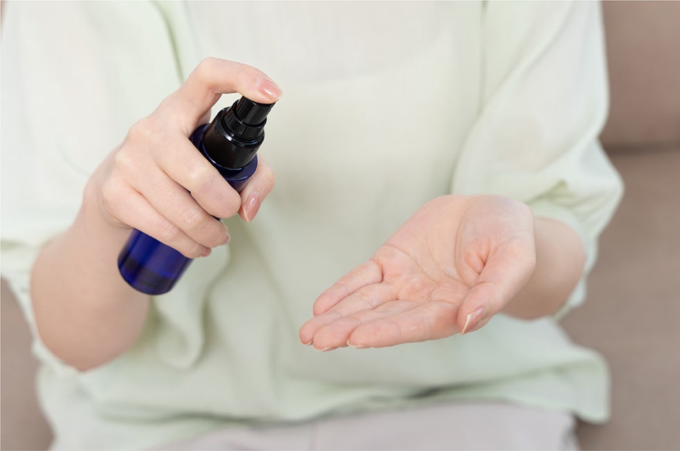 ※目、口、鼻の中にスプレー液が入らないように注意し、外側だけに塗布しましょう。
