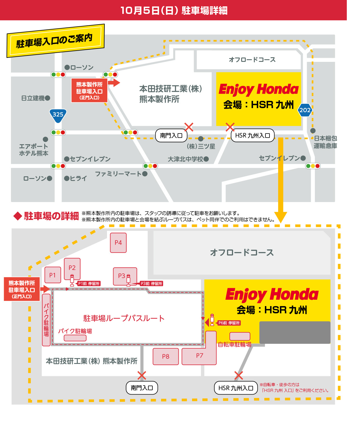 駐車場は10/4(土)と10/5(日)で異なります。